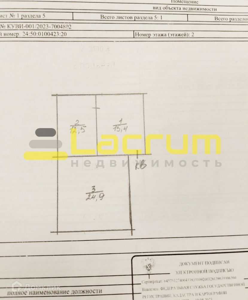 2-комнатная квартира, 52.8 м2, этаж 2 / 2, на продажу в Красноярске, Мелькомбинатская улица, 3