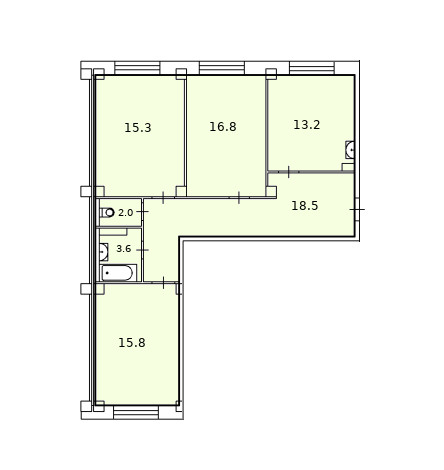 • две спальни 15.8 и 15.3 кв.м.