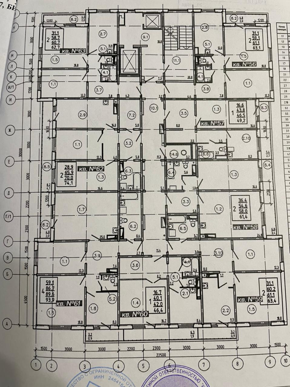 Жилая площадь 62.4 м2