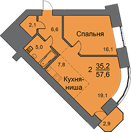 Общая площадь 57.4 м2