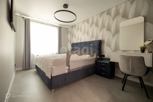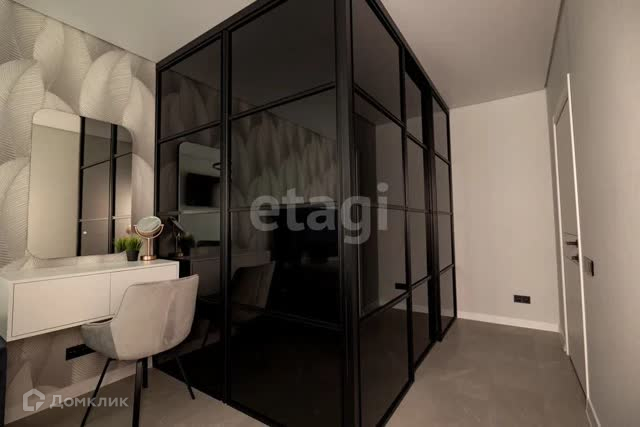 Просторная спальня для влюбленных = в светлой цветовой гамме, где ВМЕСТИТЕЛЬНАЯ гардеробная сделана на заказ из перегородок и HD Charcoal 05 SRC темного стекла; так же в комнате остается кровать Silvana Sky Velvet 40.