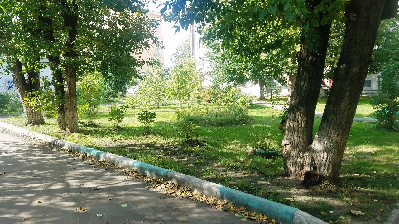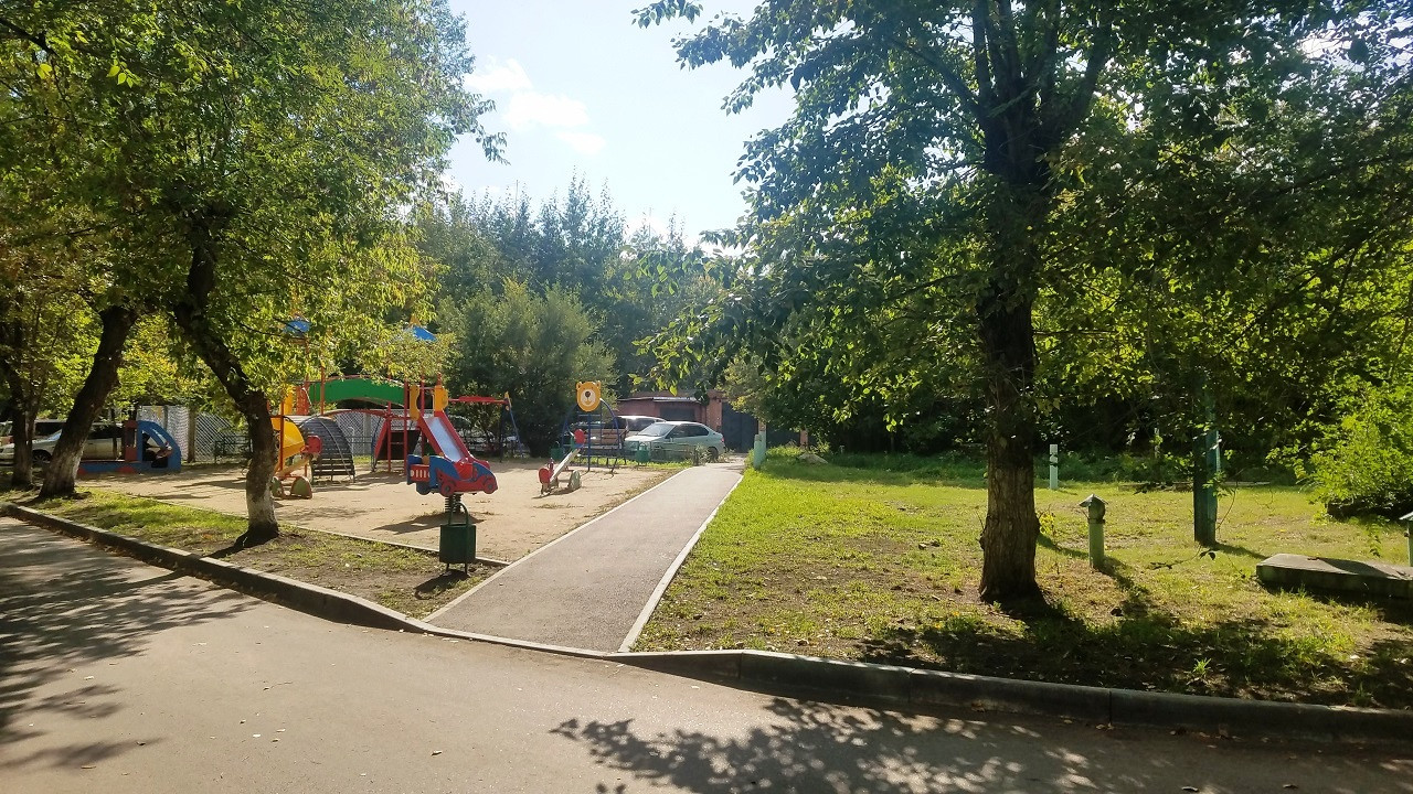 Хорошее состояние дома, красивый ухоженный двор, после благоустройства, очень зеленый и тихий, современные спортивная и детская площадки.