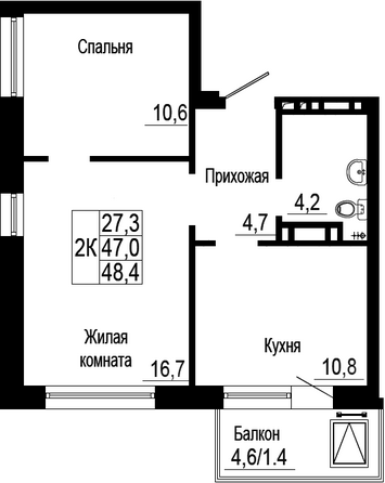 Жилая площадь 27.3 м2