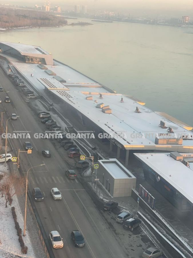 Окна и балкон с отличным видом на набережную Енисея (галерея Енисей, кафе Tommy house, фитнес a Nice day, кинотеатр Синема парк, аквацентр).