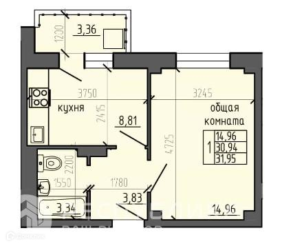 общая площадь 31.95 кв.м.;