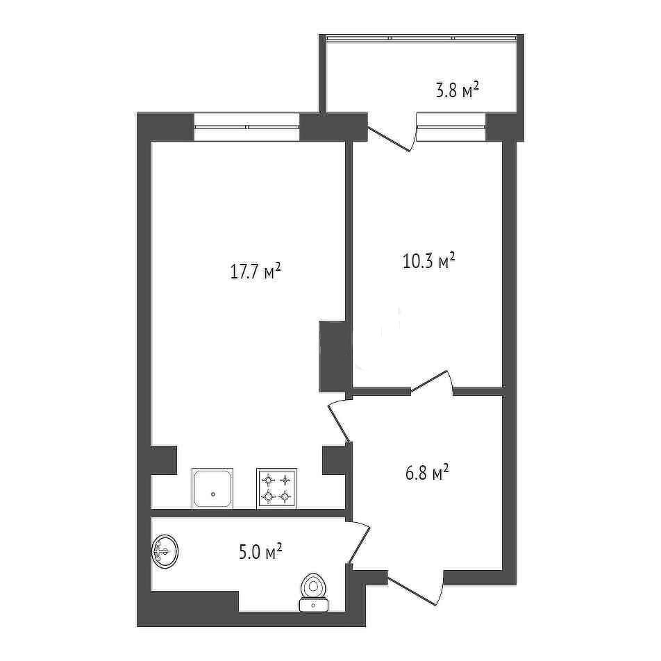 Балкон, лоджия 1 балкон