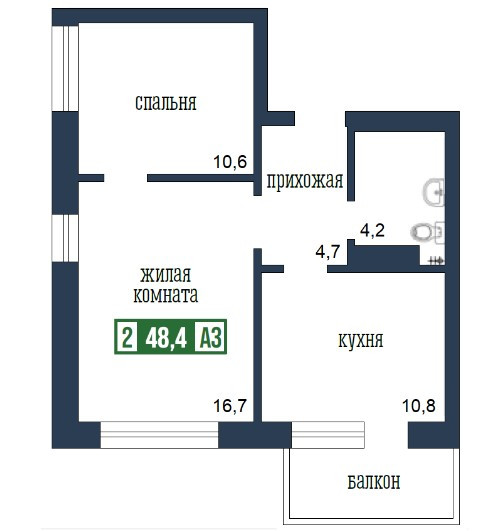 Общая площадь 48.4 м2