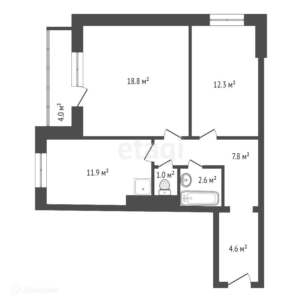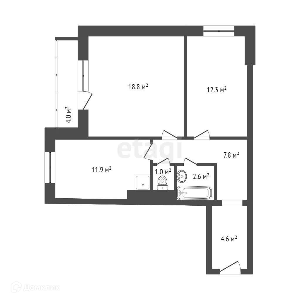 Балкон, лоджия 1 балкон