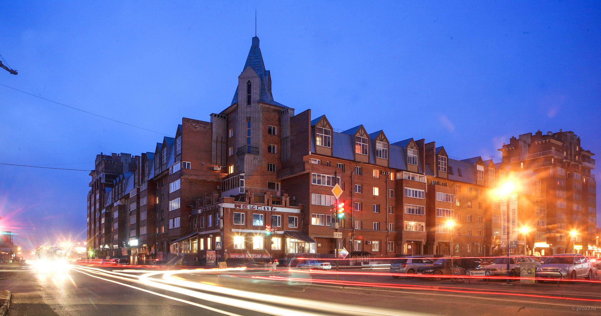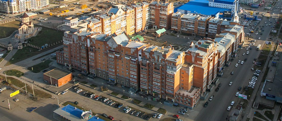 Справка о комплексе: на участке в 2,4 га расположены восемь 6-11-этажных блок-секций, с помещениями торговли и сервиса на первых-третьих этажах и кладовыми в цокольном. Они образуют квадратное каре со сторонами 140 на 140 метров. Общая площадь комплекса  52 000 м2.