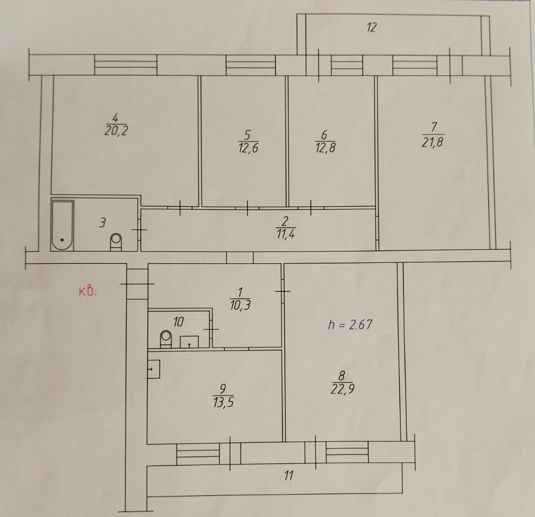 Высота потолков 2.8 м