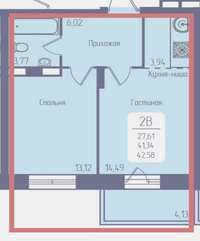 Общая площадь 42.58 м2