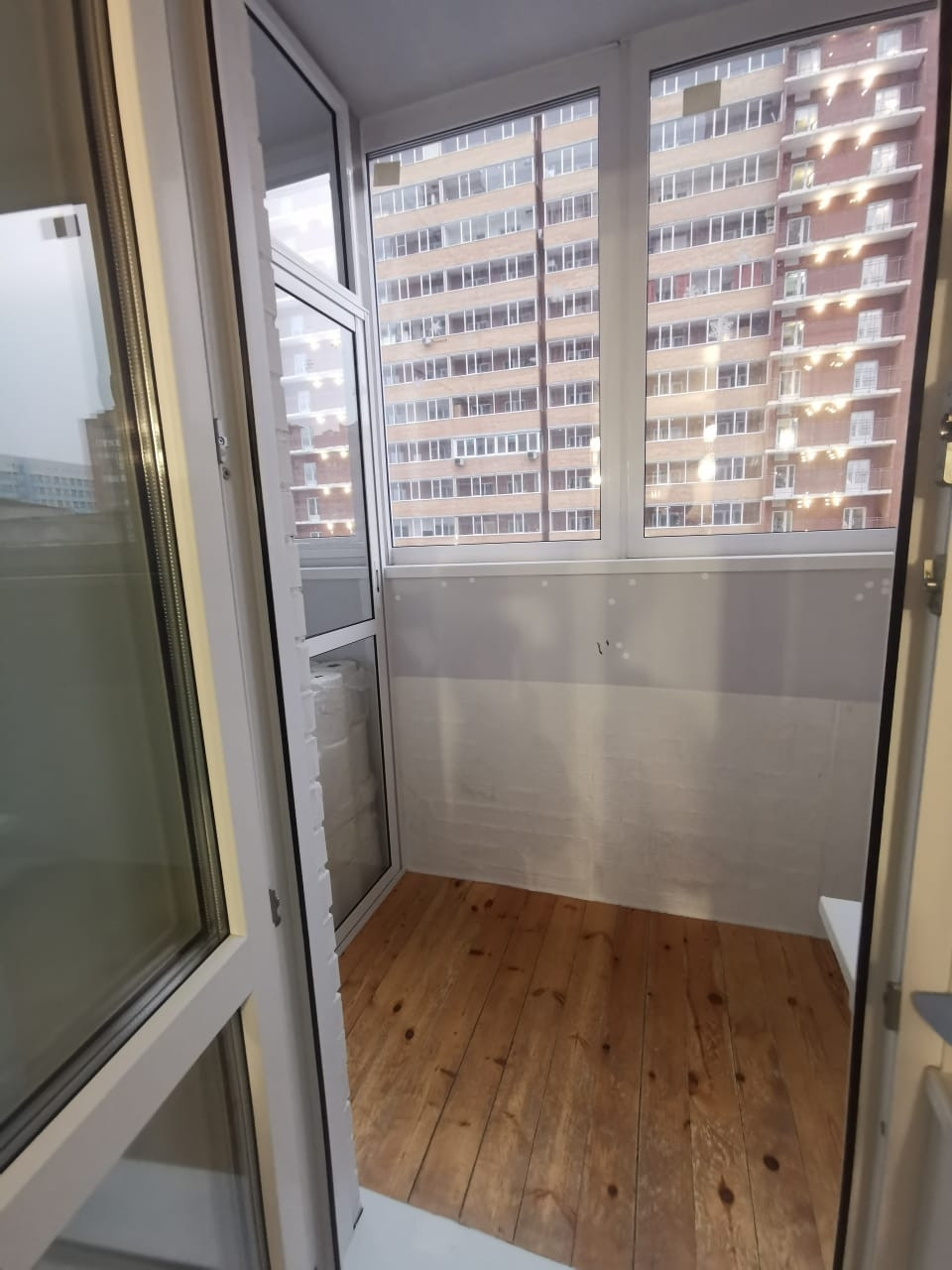 Балкон разделён на 2 части откотной дверью. Утеплен.