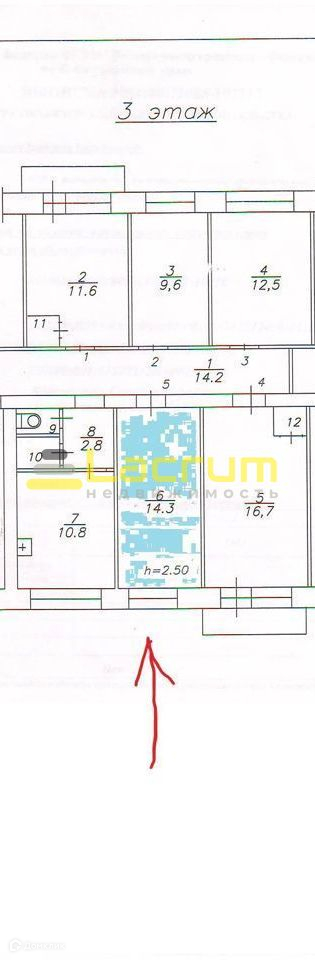 Высота потолков 2.5 м