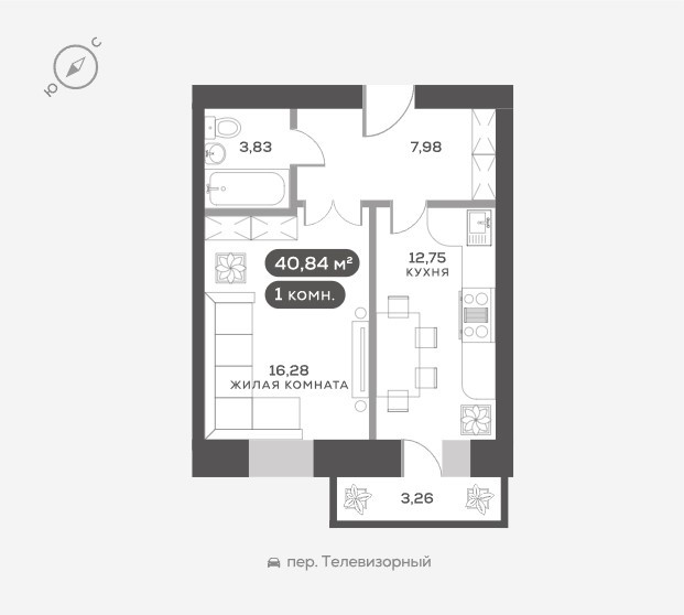 Общая площадь 40.84 м2
