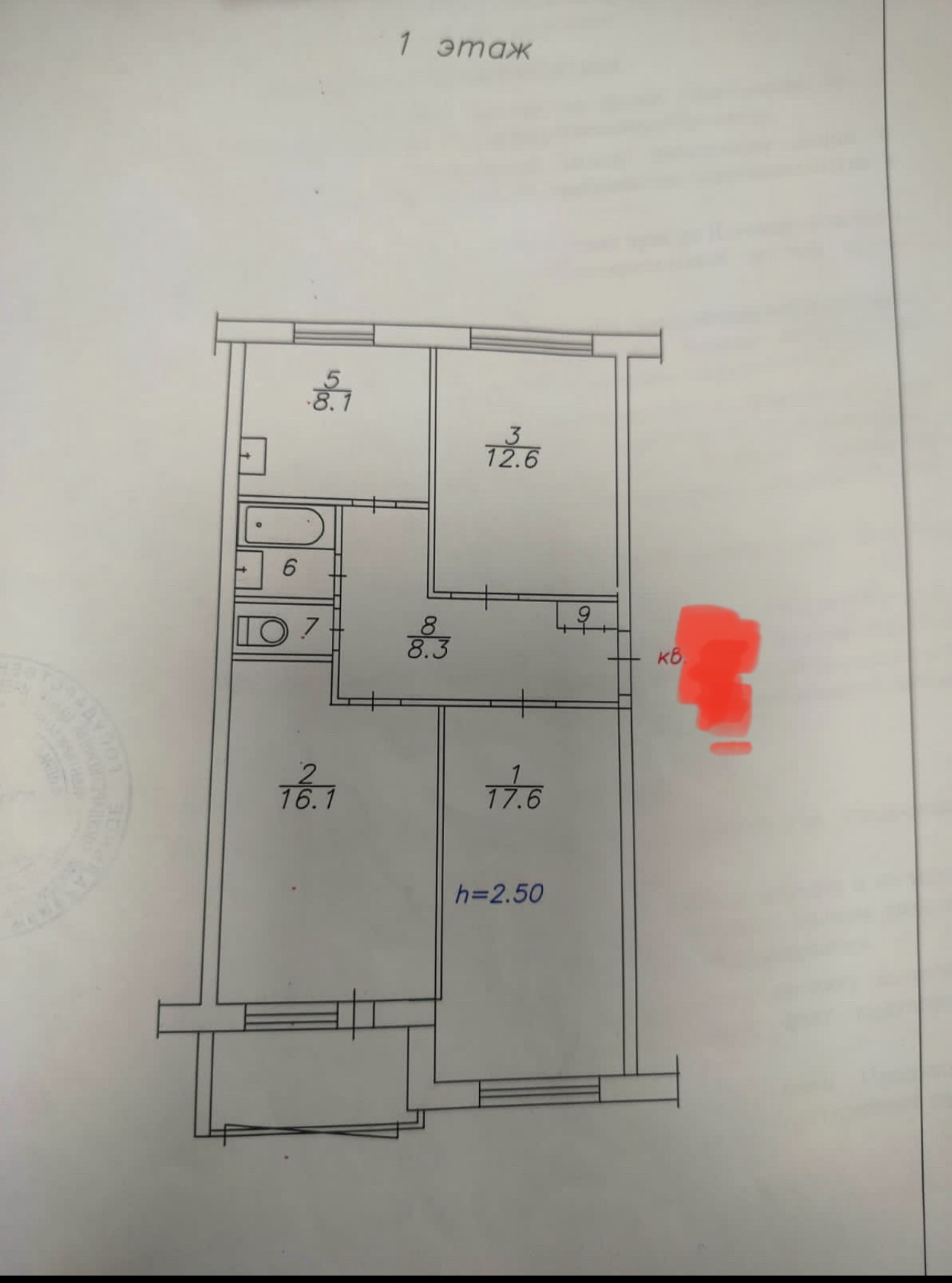 Балкон, лоджия 1 балкон