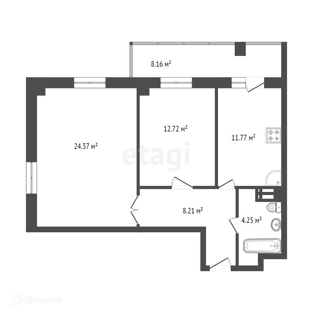 2-комнатная квартира, 64 м2, этаж 19 / 25, на продажу в Красноярске, Прибойная улица, 37с4