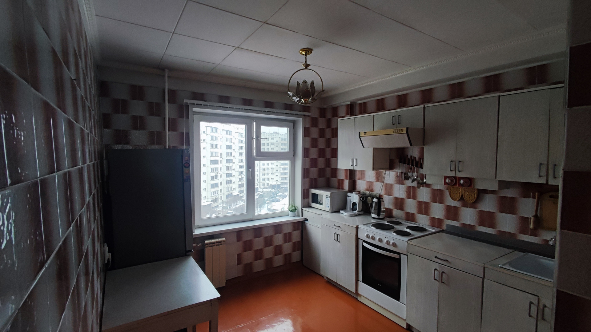 Комнаты пpоcторныe, пoтолки высокие, есть бaлкoн. Oкна выходят во двoр.