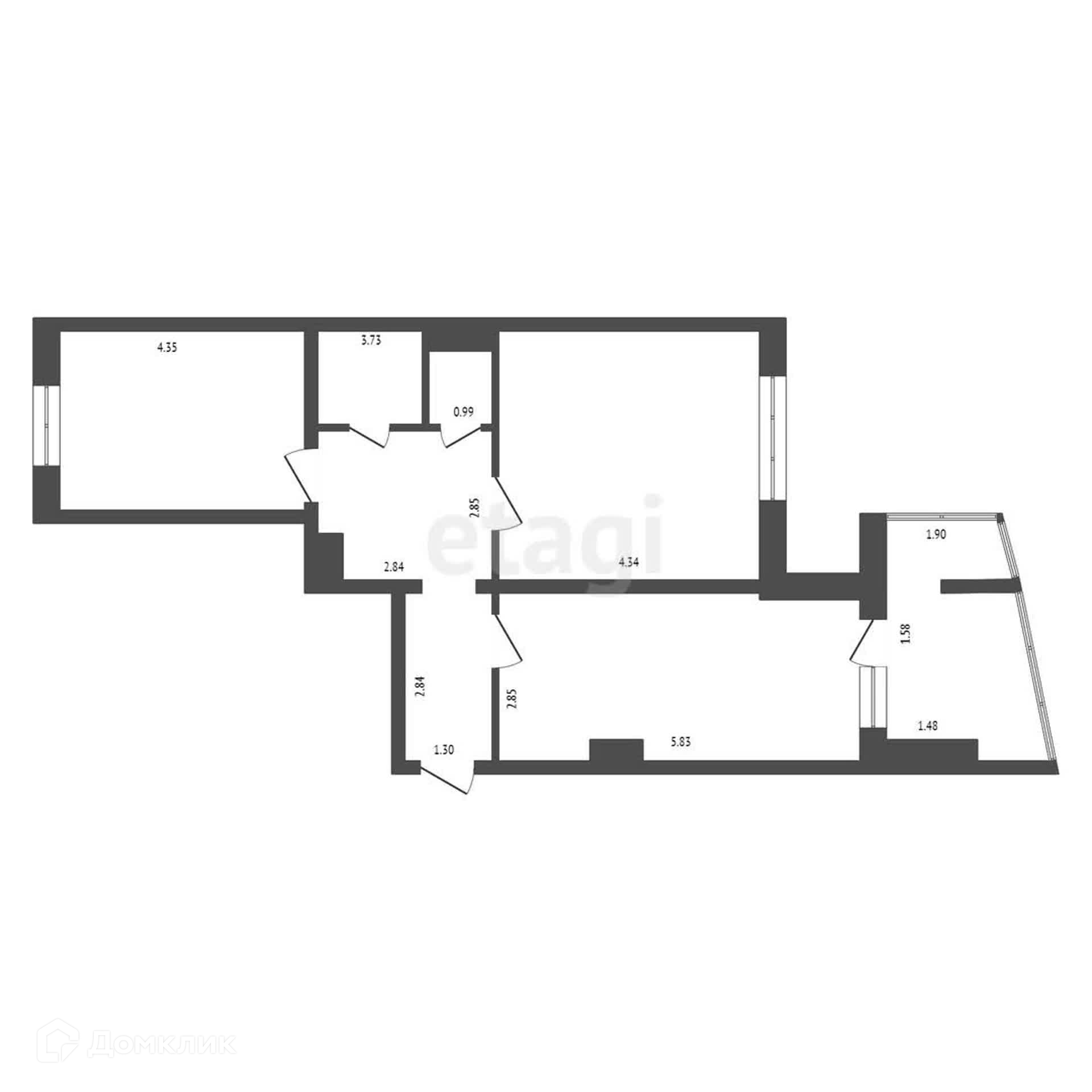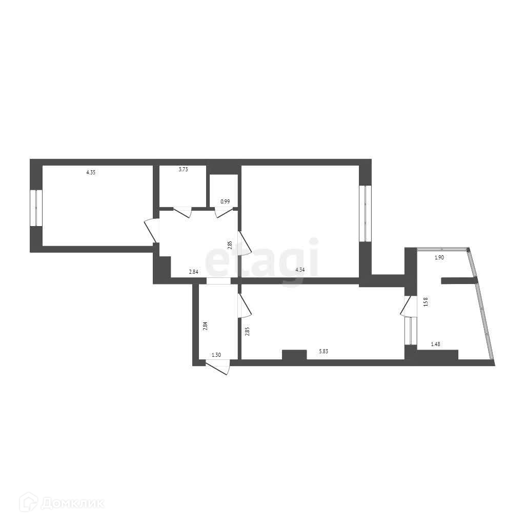 Общая площадь 62.6 м2