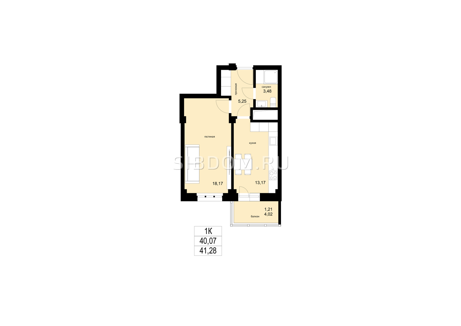 Общая площадь 41.28 м2