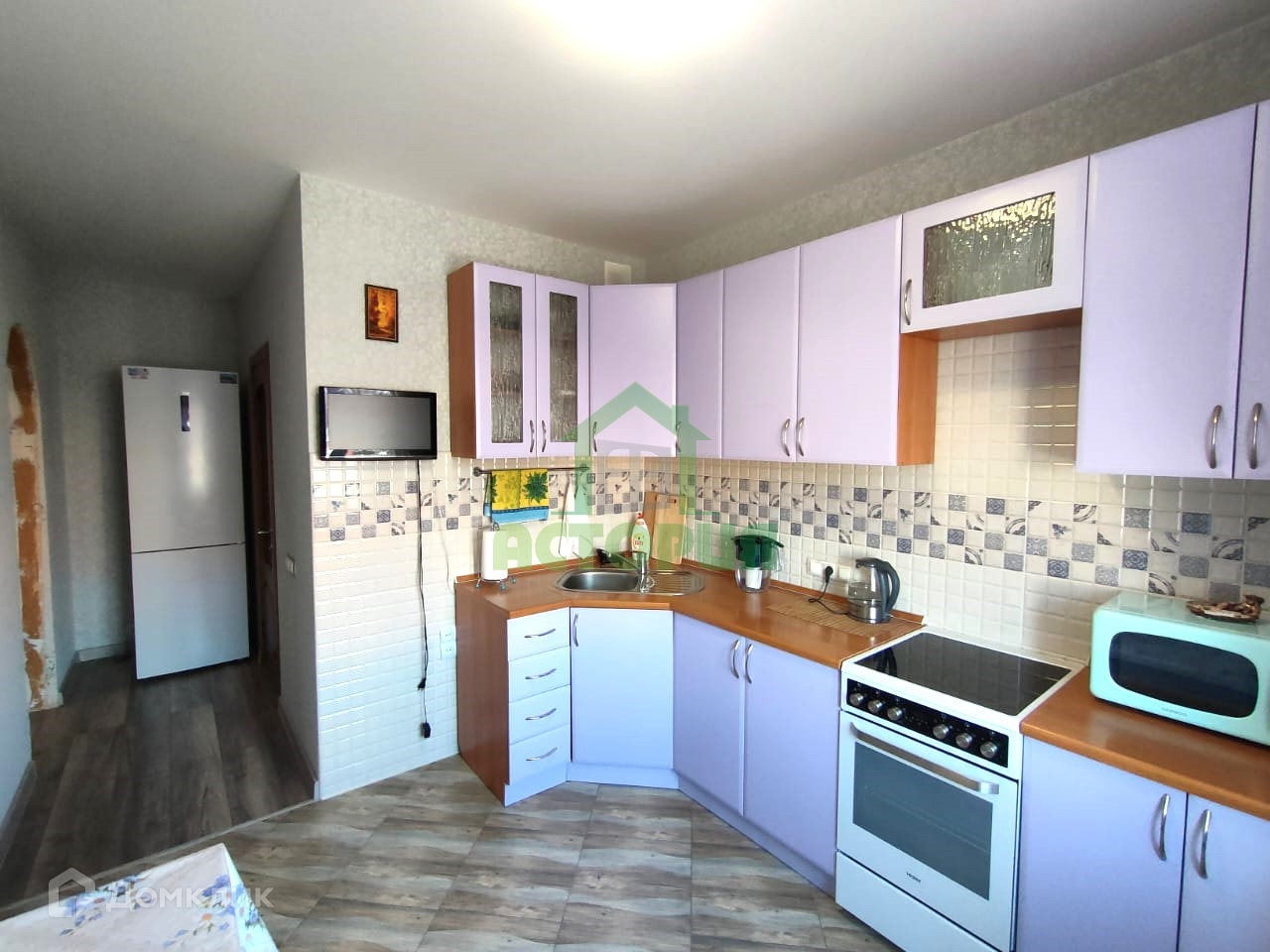 - в коридоре и в зале натяжные потолки, на кухне и спальне побелка (потолки идеально вытянутые, ровные),