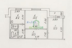 Общая S - 53,3 кв.м, жилая - 29,6 кв.м (17,3 + 12,3), кухня - 8,6 кв.м,