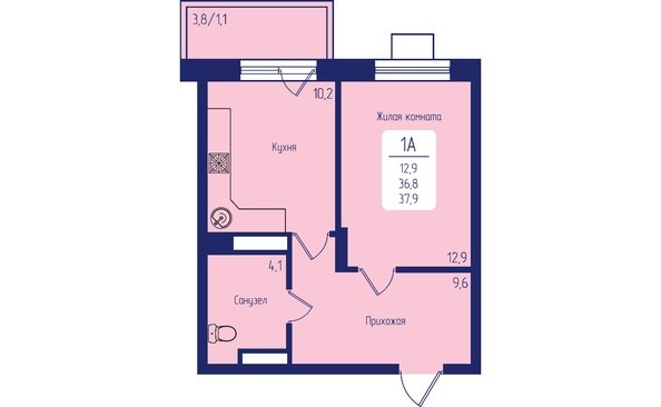 Общая площадь 37.9 м2