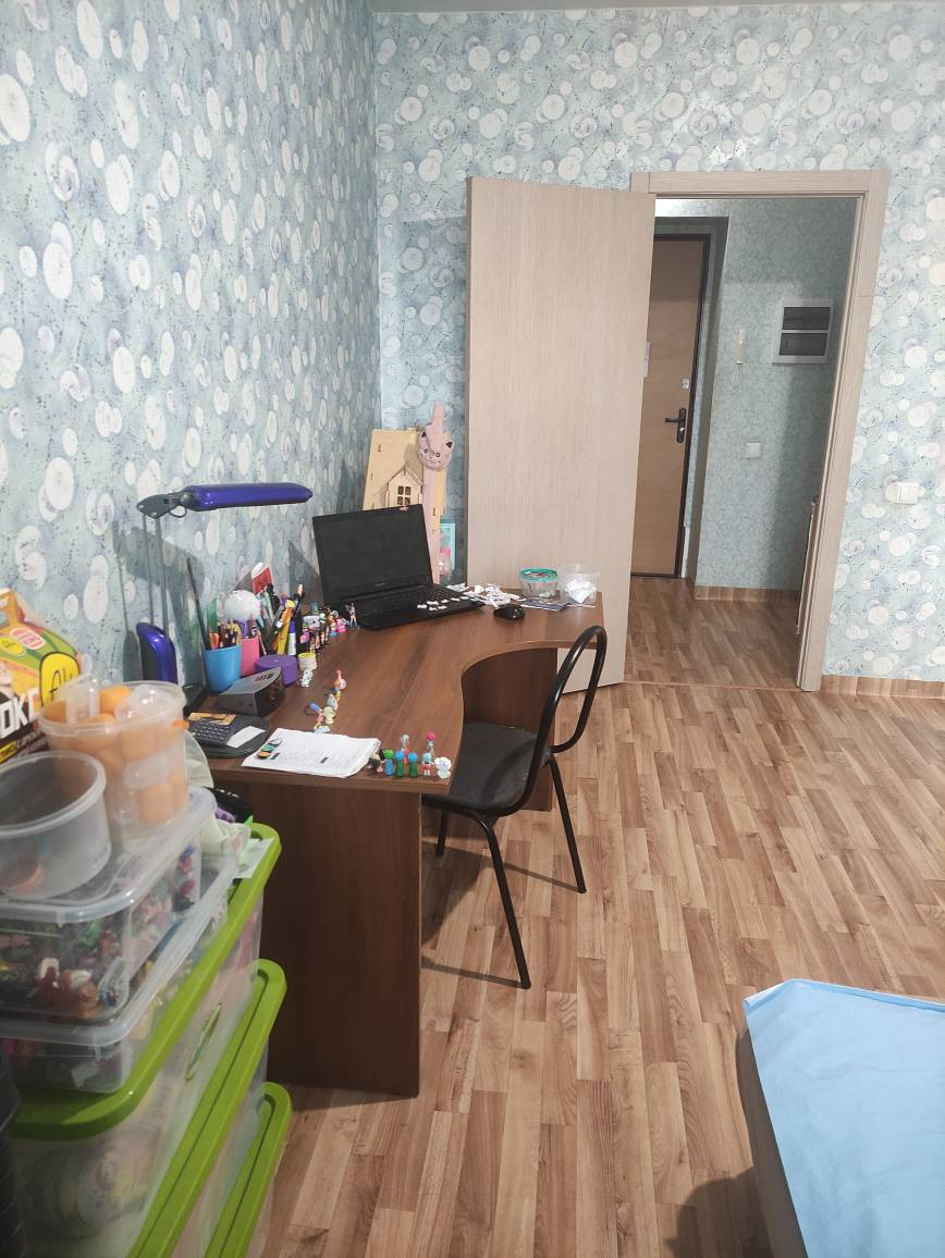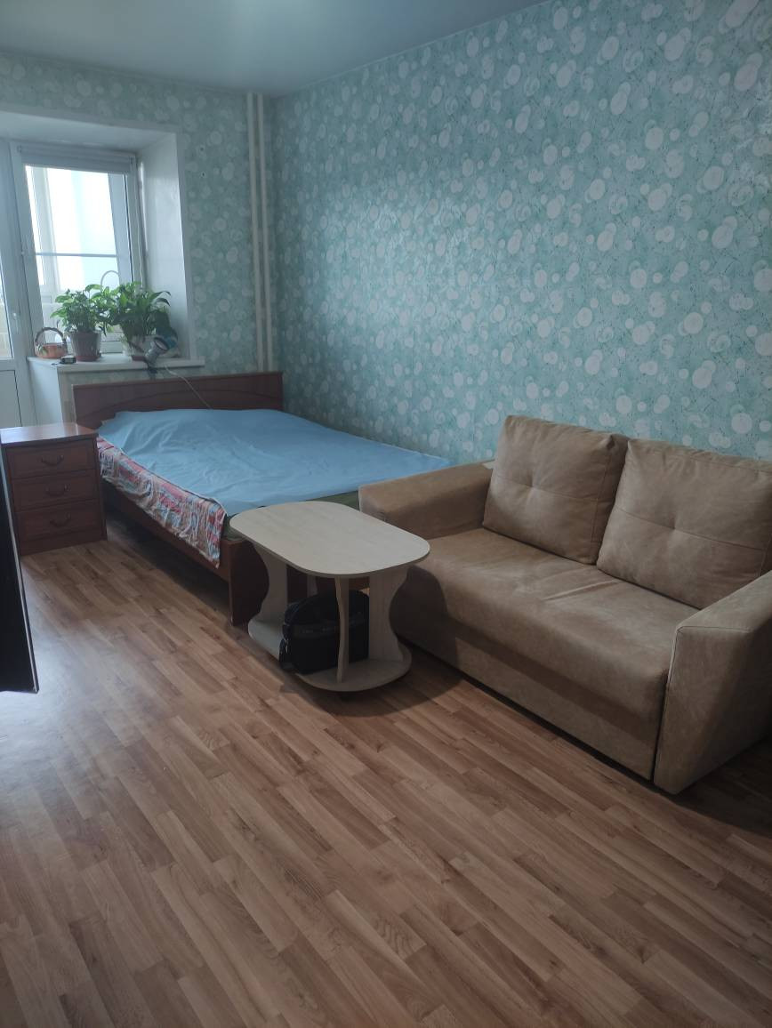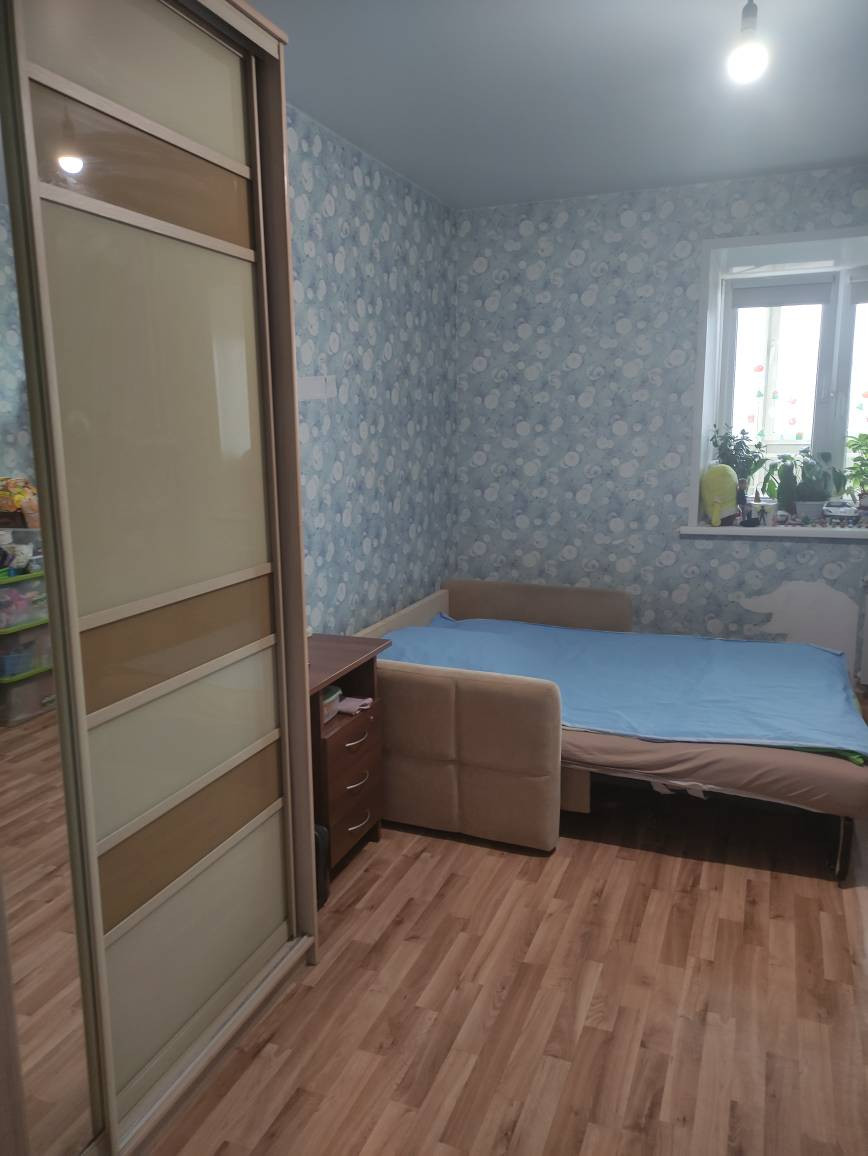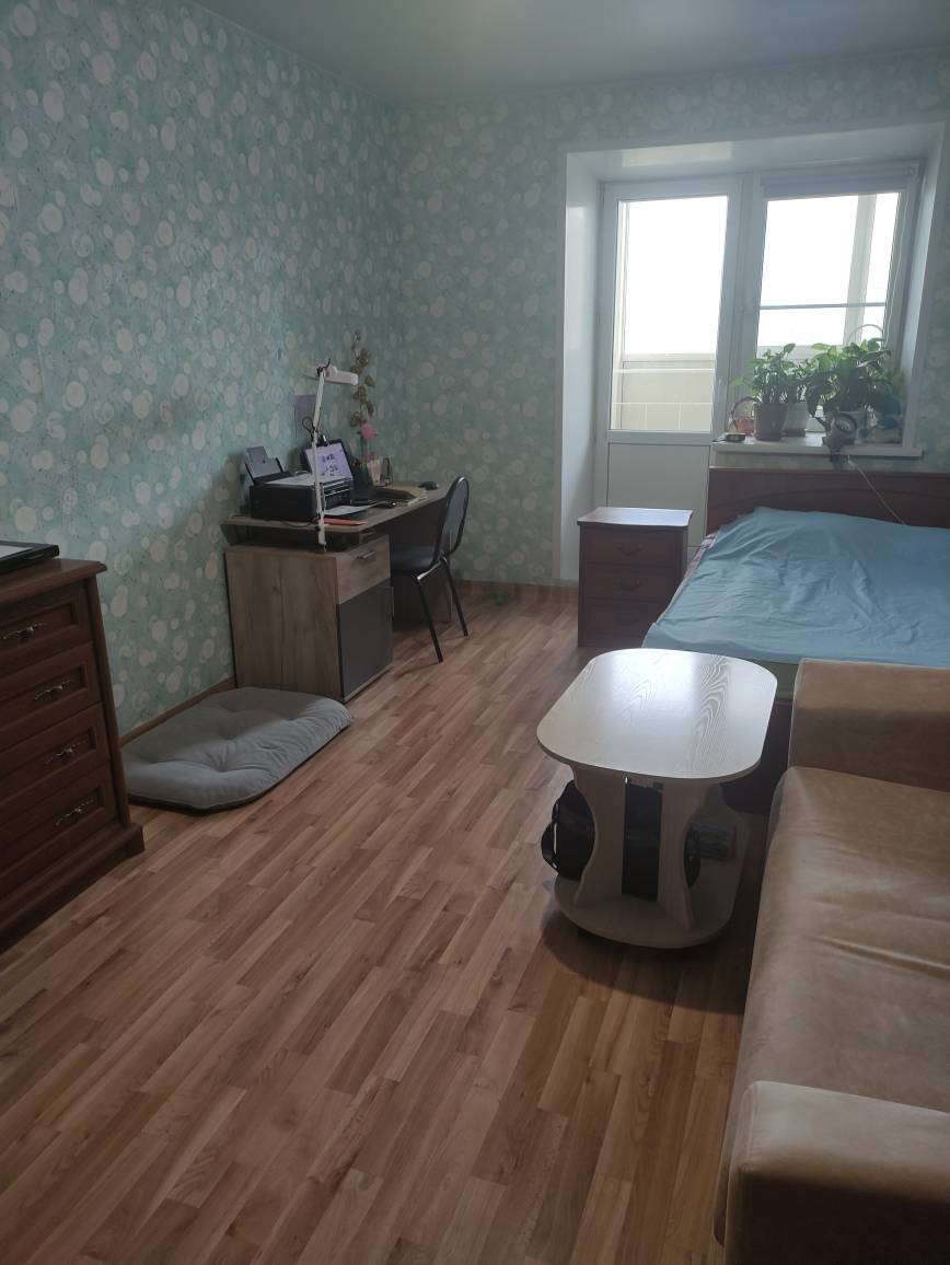 Квартира теплая, соседи нормальные,сделаны окна и лоджия (прорезинены - не дует). На окнах ролл-шторы блэк аут. Остается встроенный шкаф в комнате.