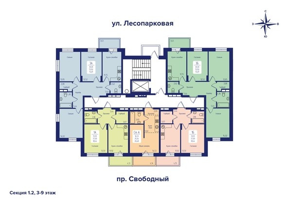 3-комнатная квартира, 74.01 м2, этаж 5 / 9, на продажу в Красноярске, Свободный проспект, 66М