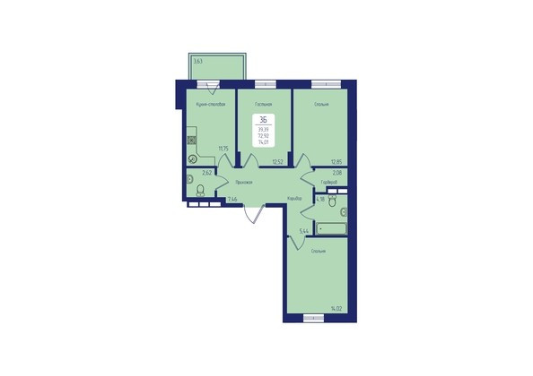Общая площадь 74.01 м2