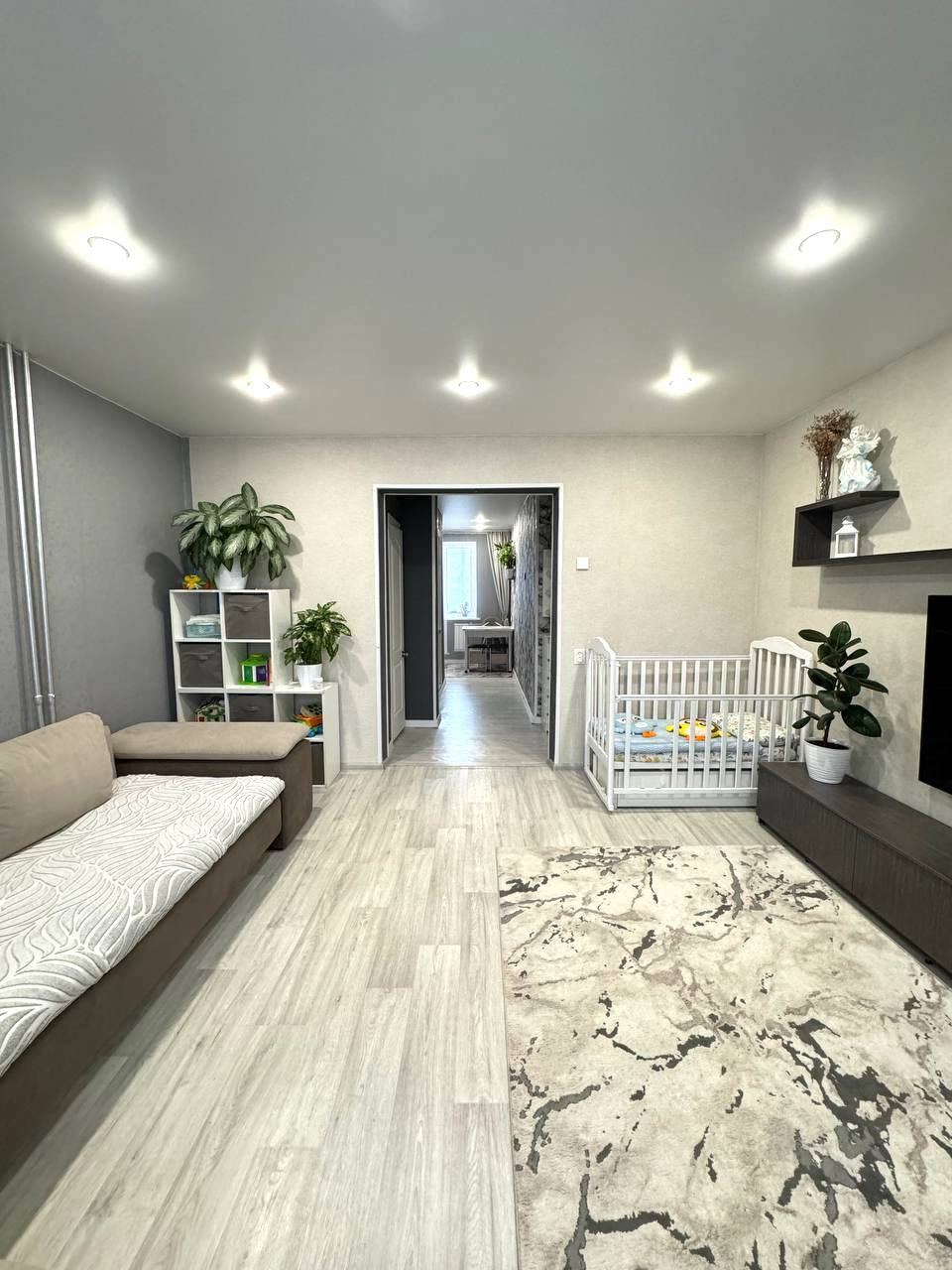 Удoбная плaниpoвкa: большая гoстиная с застекленным балконом, раздельный cанузел, просторный коридор, кухня с застекленным балконом, а также есть отдельная кладовая комната.