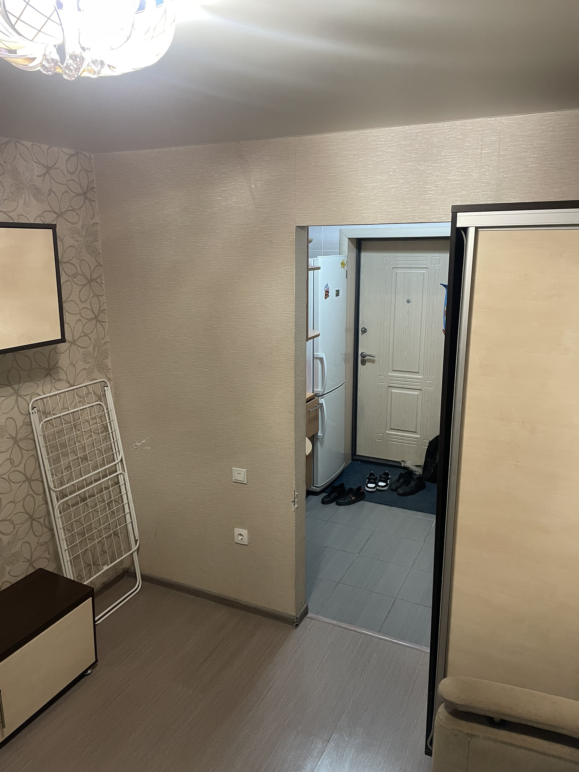 Остается кухня и шкаф ( внутри вешало для одежды и выкатные ящики. ) Нет проблем с парковкой. Взрослая поликлиника в соседнем доме. Свободная продажа, никаких ограничений и обременений нет.