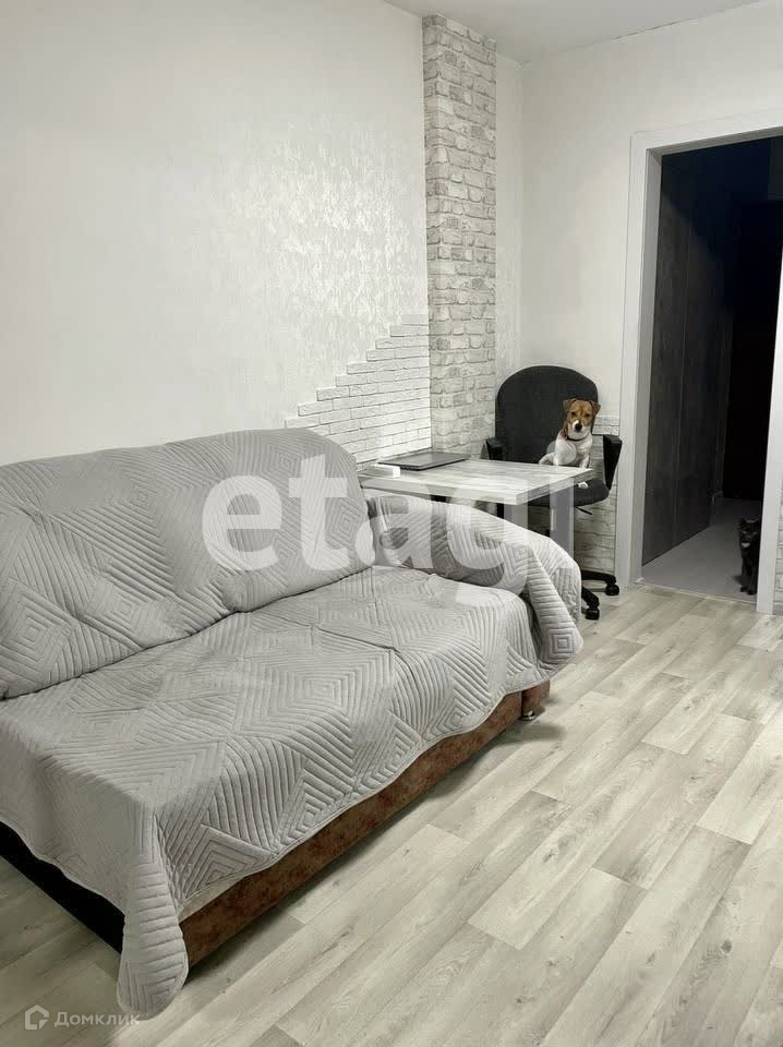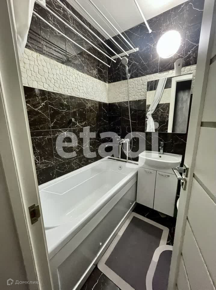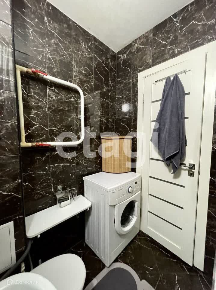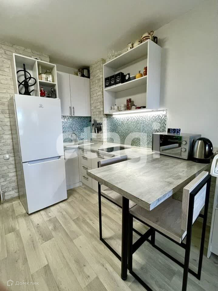 В квартире остаётся встроенный шкаф в коридоре, кухонный гарнитур, барные стулья, шторы и ванная мебель.