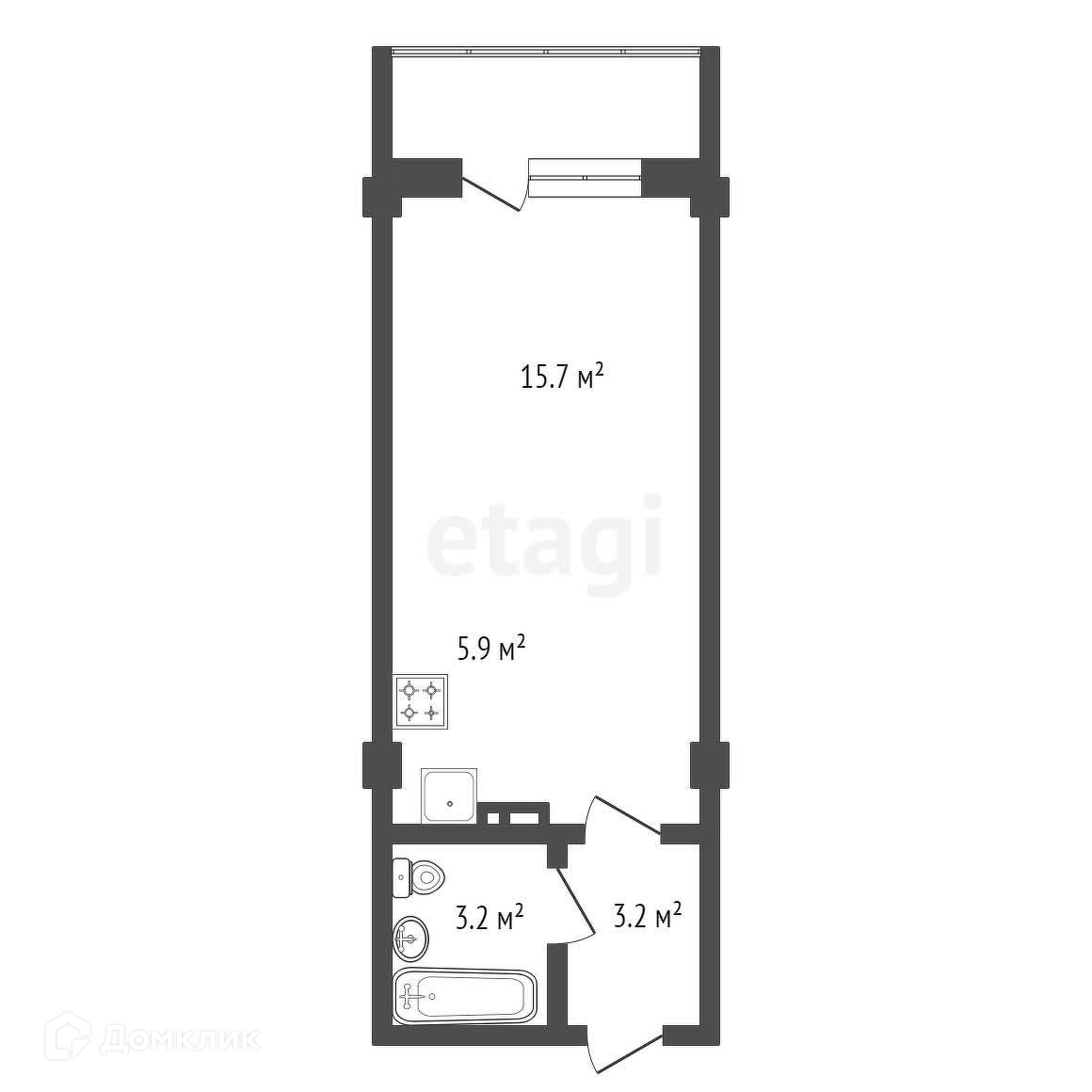 Квартира студия, 28 м2, этаж 6 / 16, на продажу в Красноярске, Соколовская улица, 70