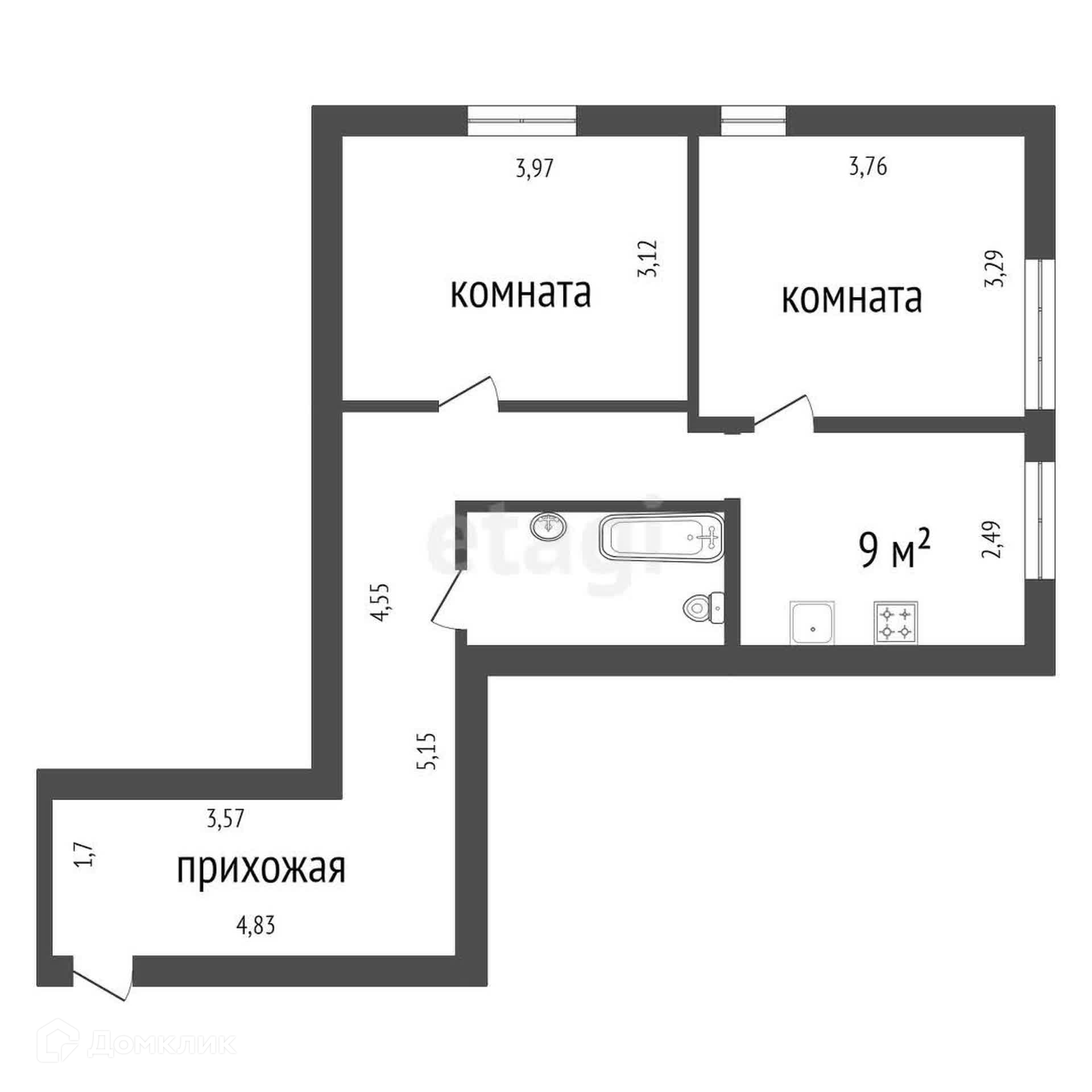 Общая площадь 54.4 м2