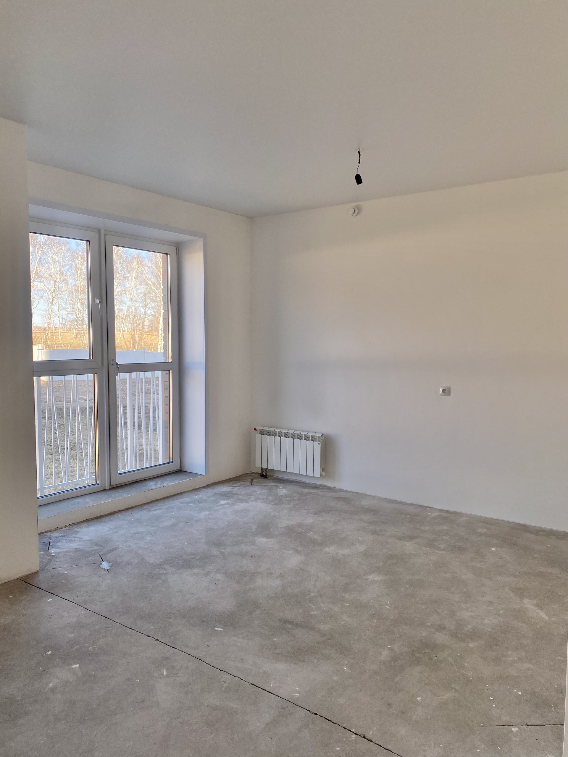 Дом сдан, право собственности оформлено, в квартире никто не жил, состояние "от застройщика": хорошая входная дверь, стены выровнены, натяжной потолок, из сантехники - унитаз в санузле и раковина в кухне.
