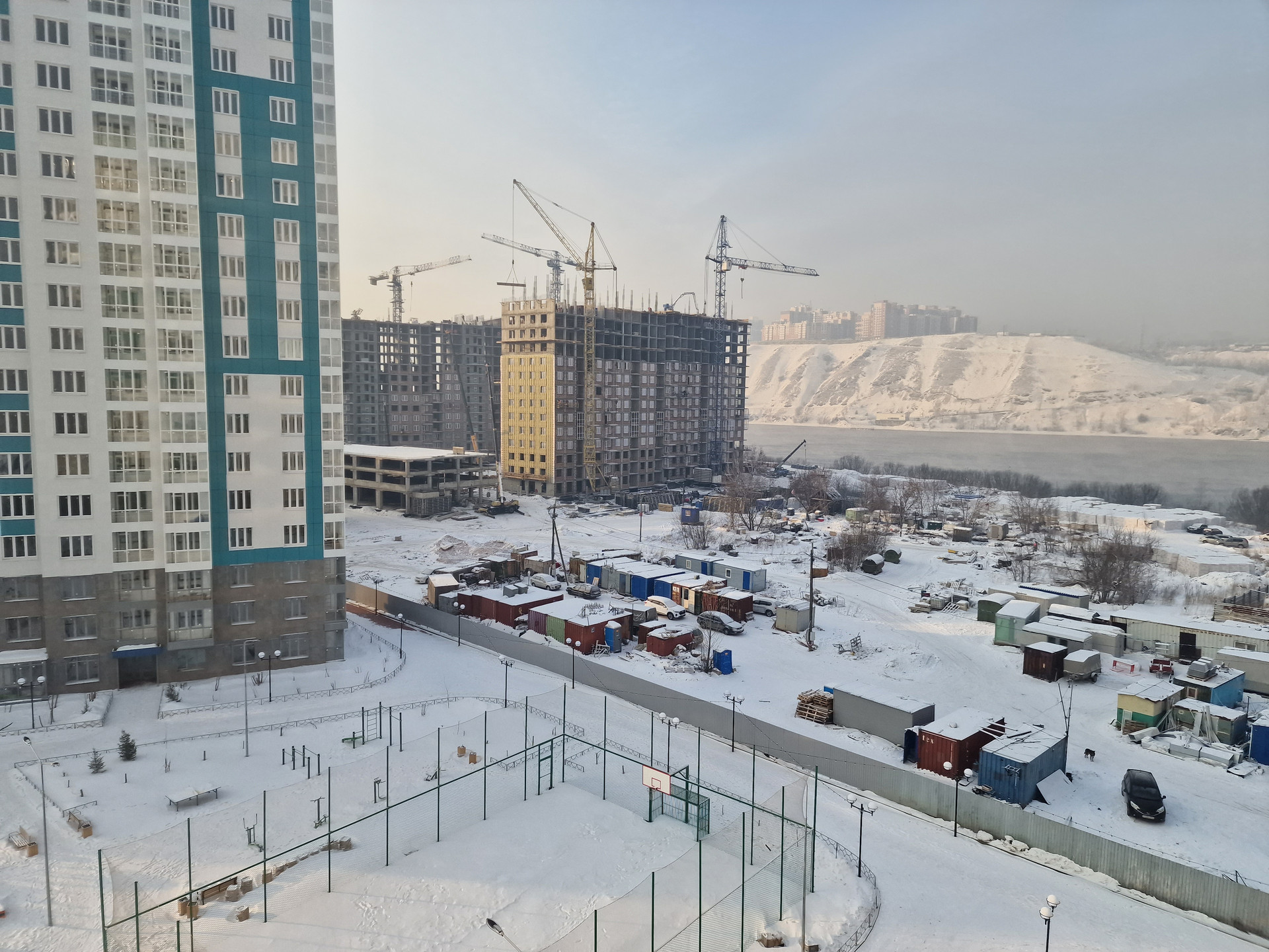 Замечательный район, много детских и спортивных площадок, парковочные места наземные ,подземные, многоуровневые, вдоль набережной дорожка для велосипедистов и пеших прогулок. есть дет.сад, еще один на этапе строительства, так же идет строительство школы на 1600 мест. Рядом бобровый лог, роев ручей, Столбы. До центра города 5 мин на машине, хорошая транспортная развязка.