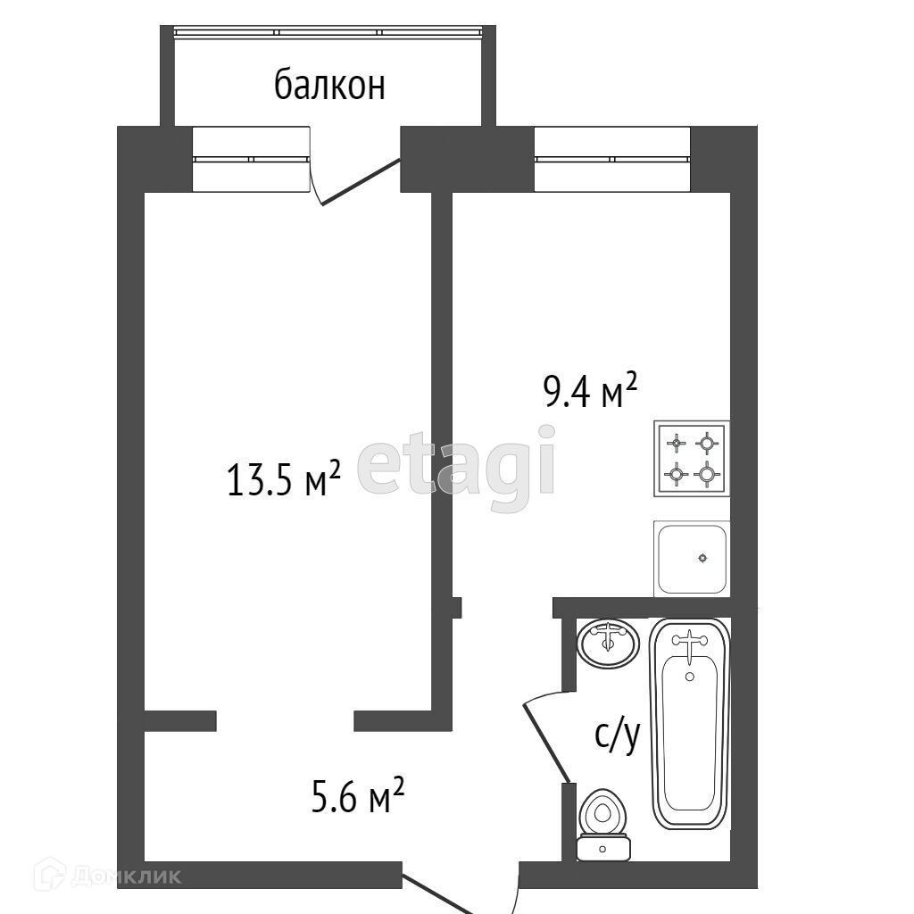 Балкон, лоджия 1 балкон