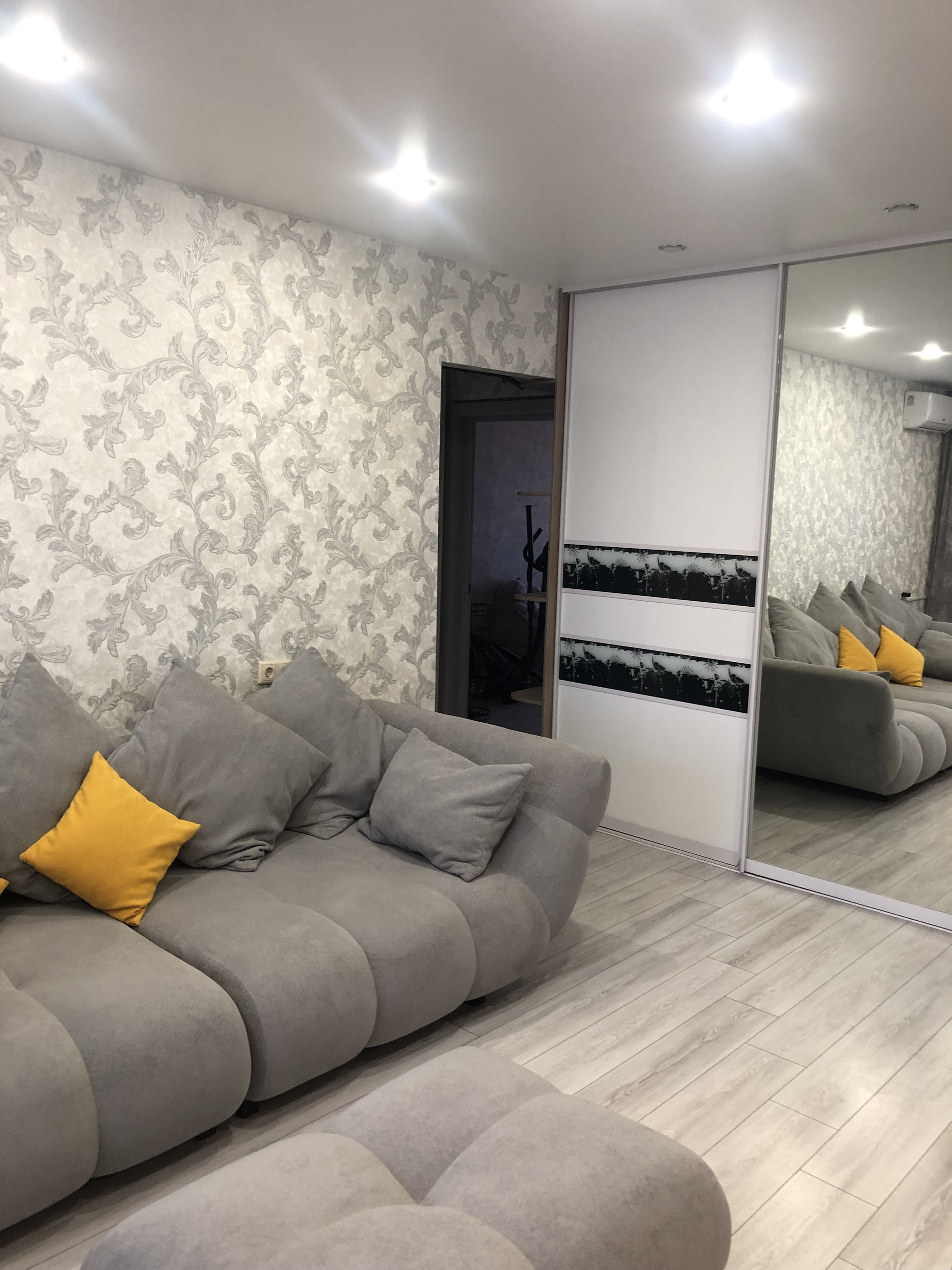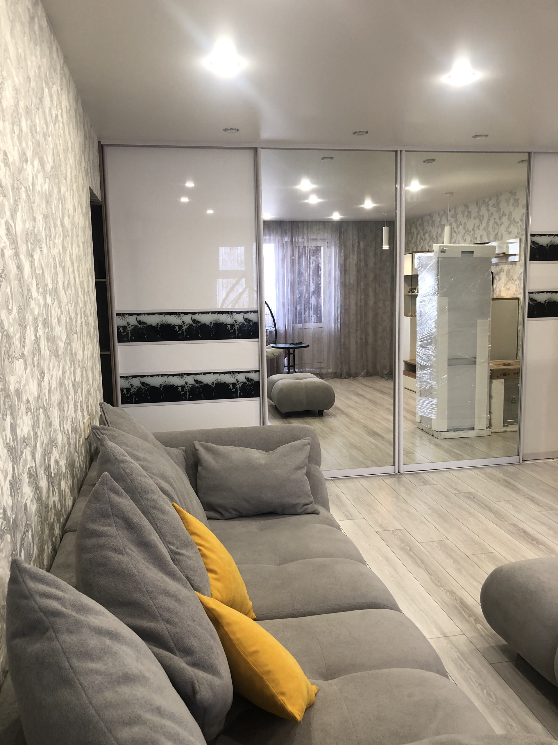 При продаже бонусом остаётся зеркальный встроенный шкаф, и гардеробная комната. Также оставим кухонный гарнитур.