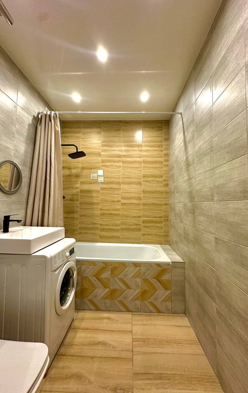 В квартире выполнен качественный современный ремонт. На полу ламинат, натяжные потолки, санузел в кафеле.