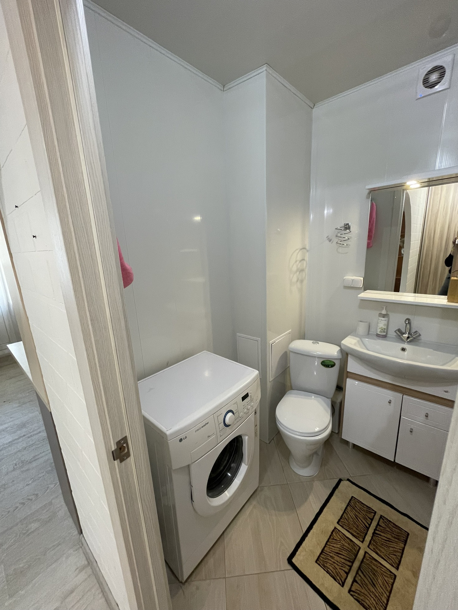 Совмещенный санузел с хорошим ремонтом, трубы зашиты в короб.