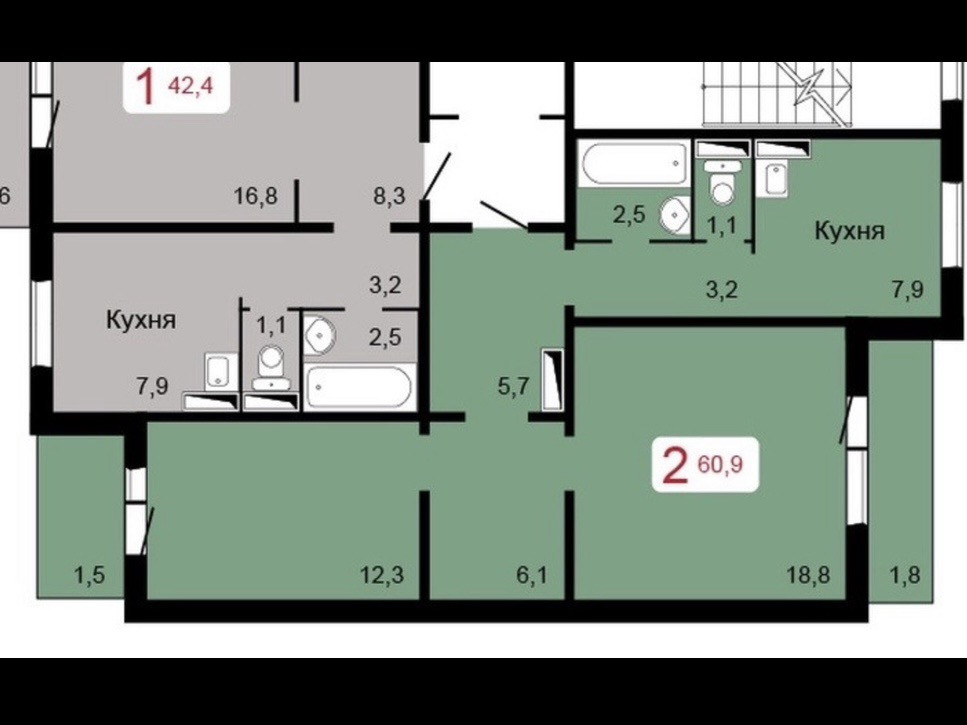 Санузел 1 раздельный