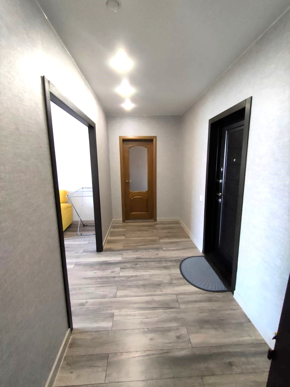- в коридоре и в зале натяжные потолки, на кухне и спальне побелка (потолки идеально вытянутые, ровные),