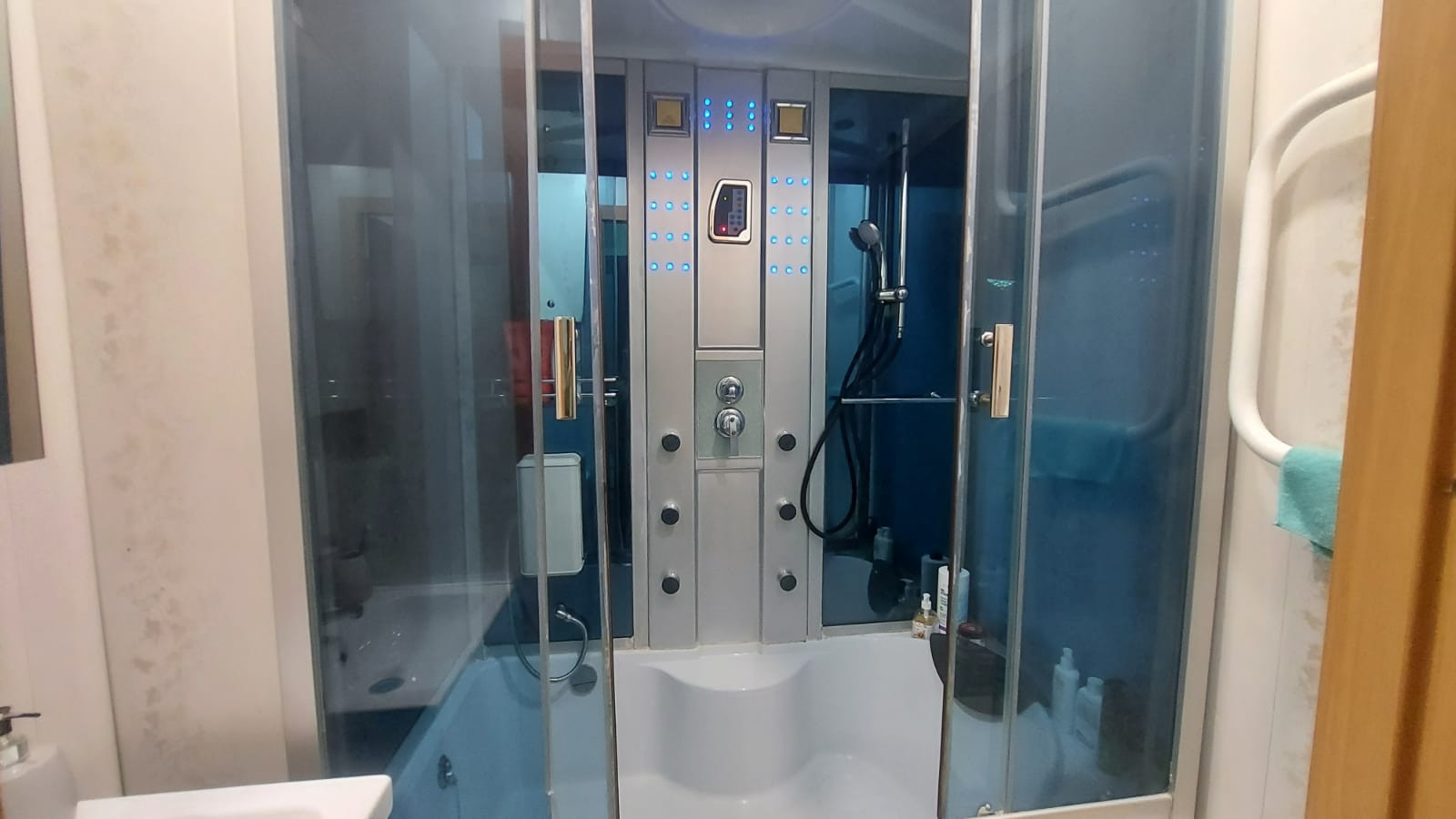 В ванной комнате установлена современная и удобная душевая кабина, где вы сможете наслаждаться расслабляющими водными процедурами. Кухонный гарнитур оснащен встроенной бытовой техникой, включая варочную панель, духовой шкаф и вытяжку.