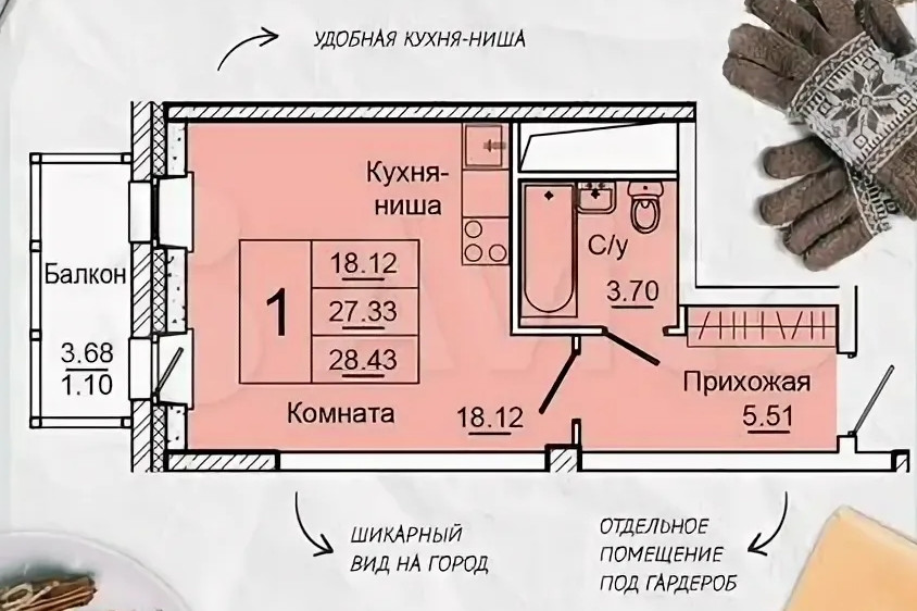 Общая площадь 27.3 м2