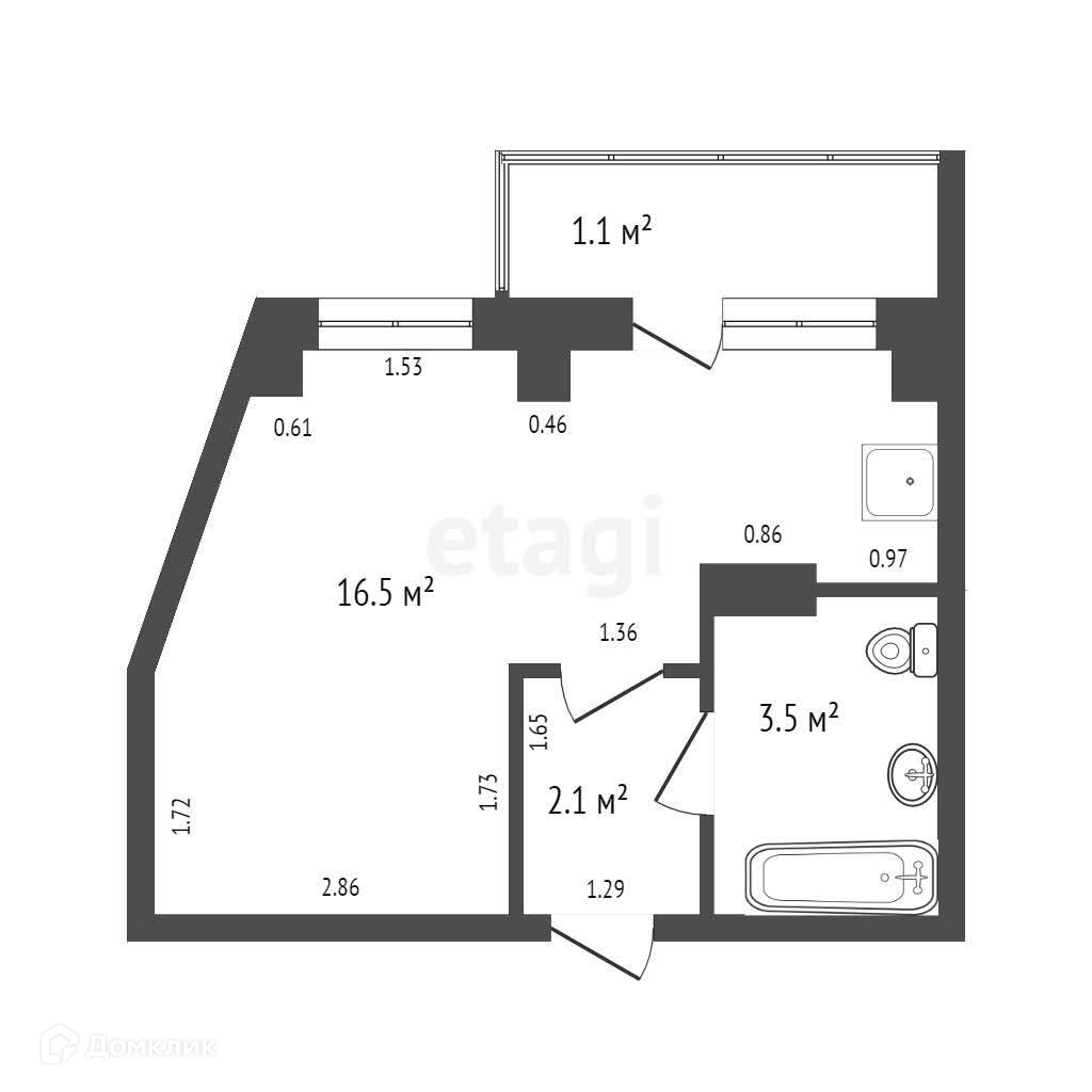 Общая площадь 21.9 м2