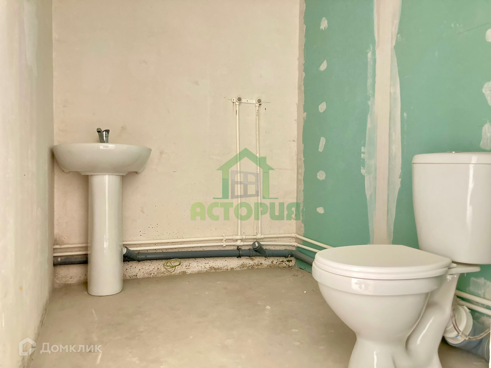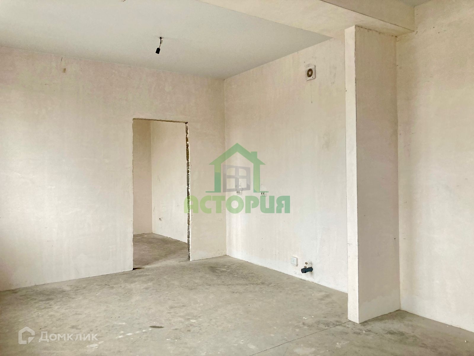 разводка всех коммуникаций, оштукатурены стены, залиты полы.