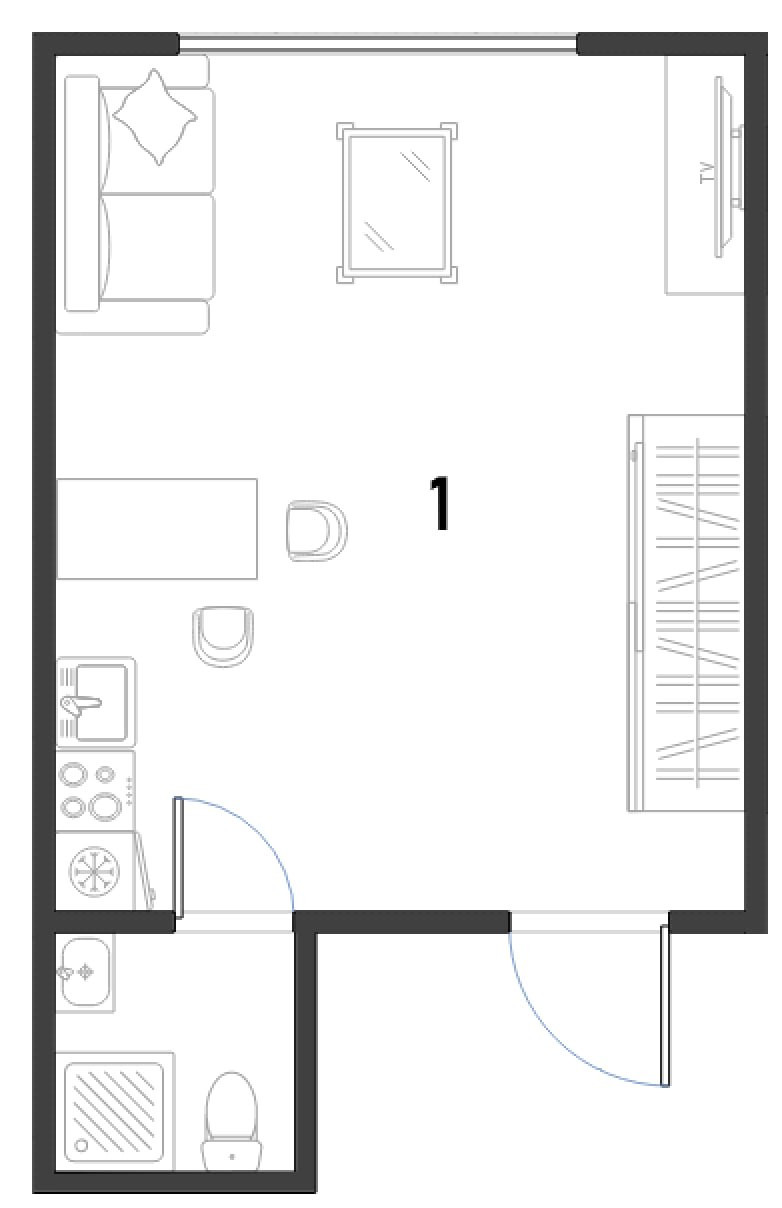Жилая площадь составляет 12.2 квадратных метра, что делает эту квартиру - студию идеальным вариантом для одного человека или молодой пары.