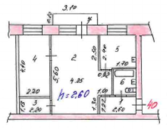 Площадь кухни 4 м2