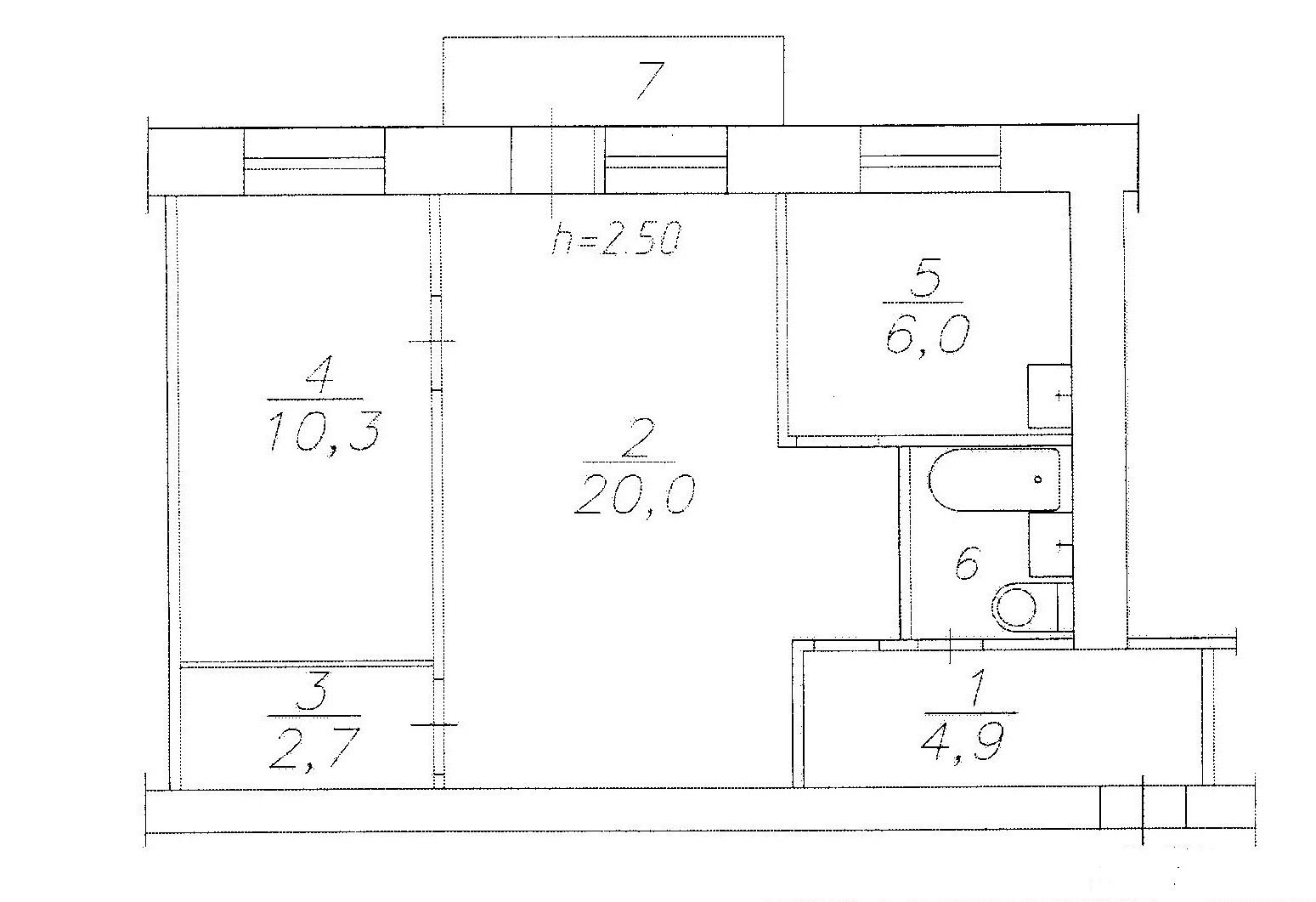 Высота потолков 2.5 м