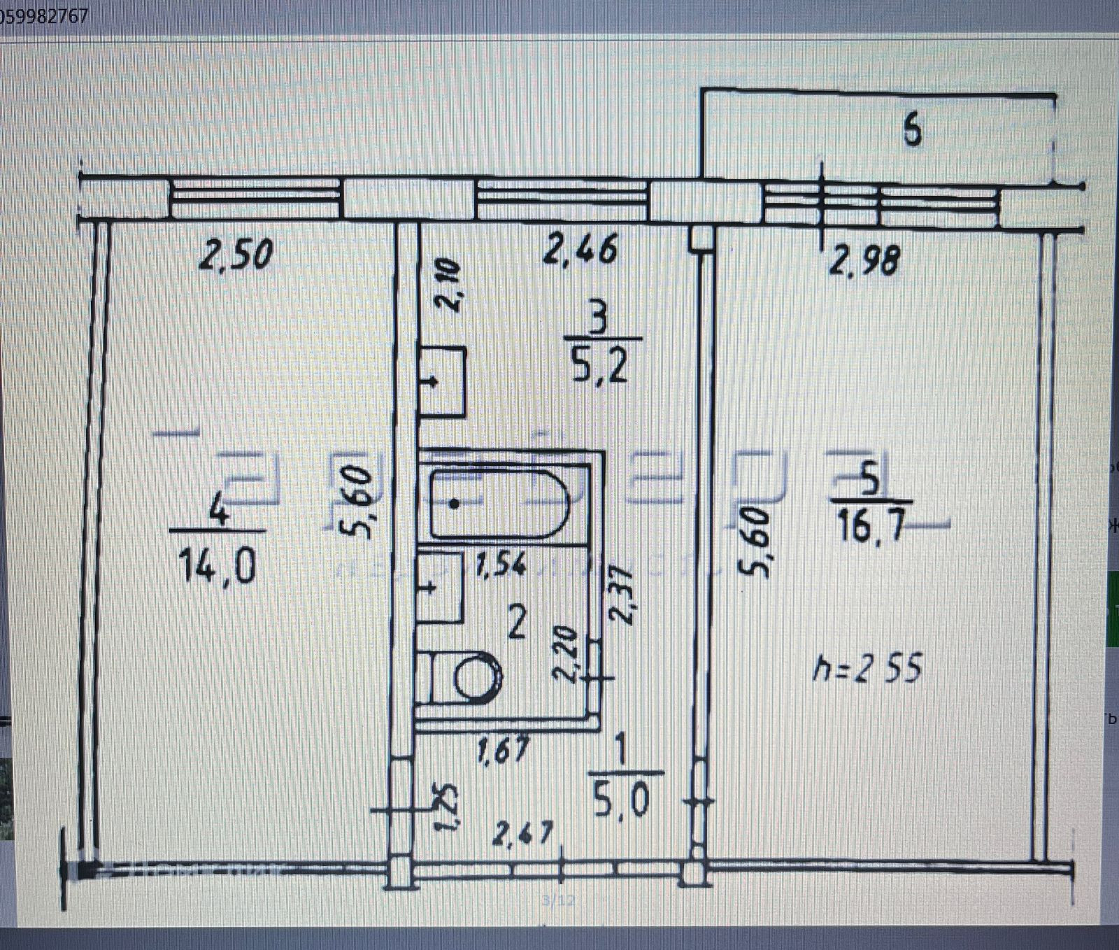 Высота потолков 2.5 м